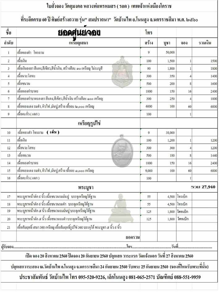 คณะศิษย์ร่วมสร้างถวาย ที่ระลึกครบรอบ 60 ปีการละสังขาร ของหลวงพ่อพรหมสร(รอด)วัดบ้านไพ อ.โนนสูง จ.นครราชสีมา