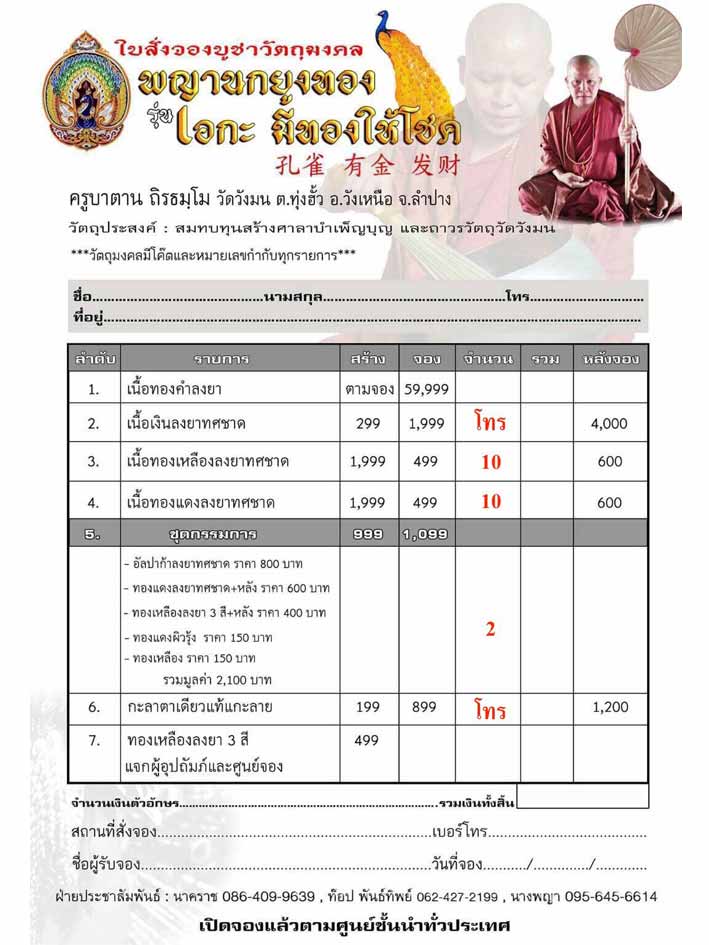 [[[เปิดจอง]]]พญานกยูงทอง รุ่น"เอกะ มีทองให้โชค" ครูบาตาน วัดวังมน จังหวัดลำปาง