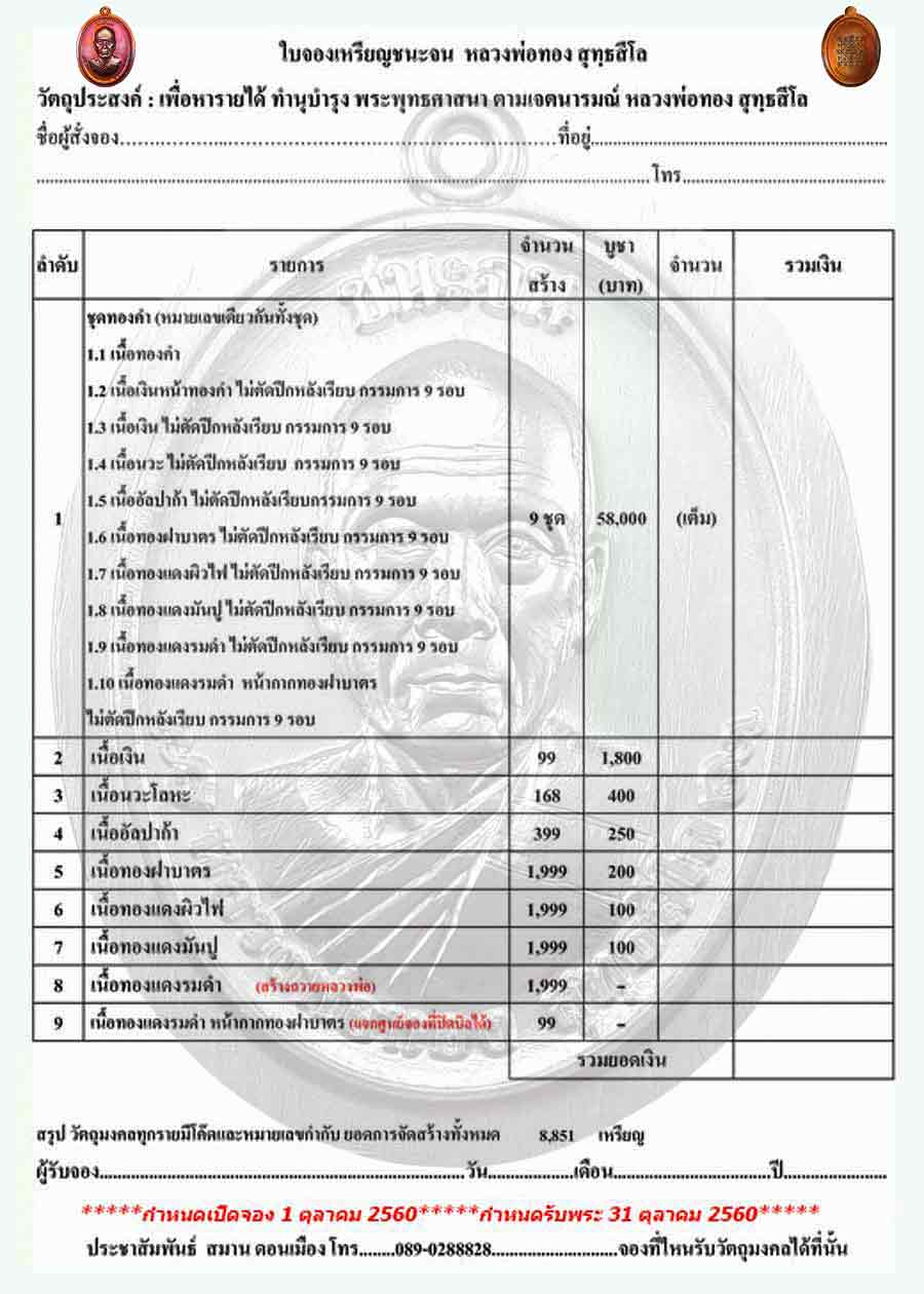 เปิดจอง เหรียญ *ชนะจน* หลวงพ่อทอง สุทฺธสีโล