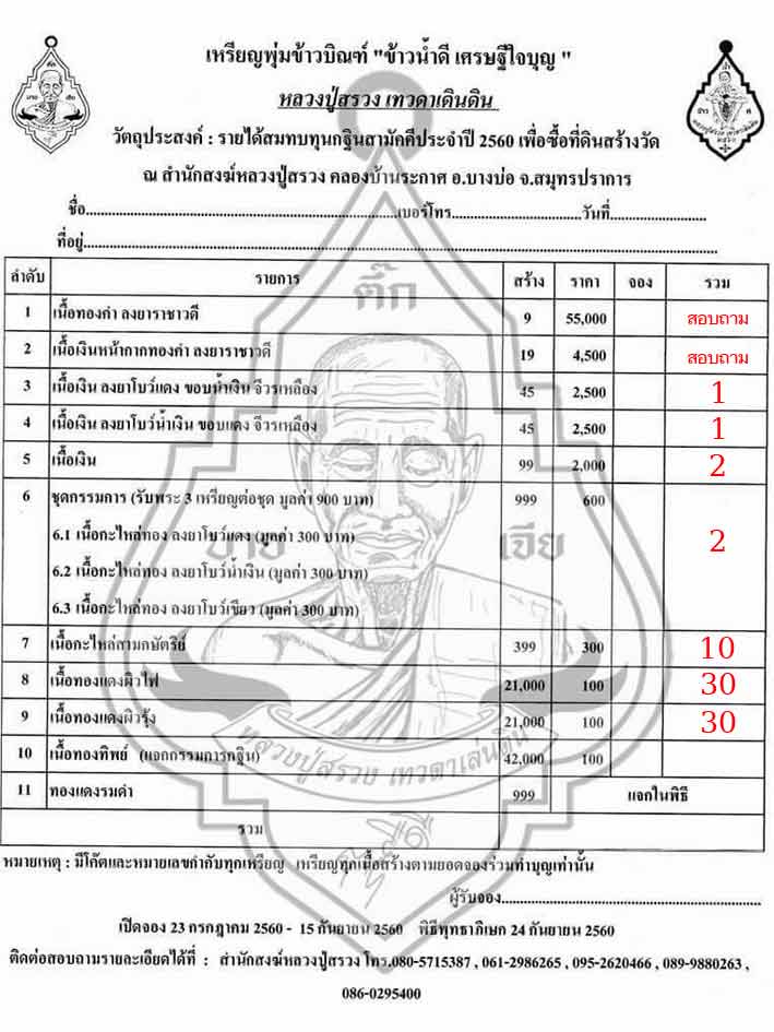 [[[เปิดจอง]]]เหรียญพุ่มข้าวบิณฑ์ รุ่น"ข้าวน้ำดี เศรษฐีใจบุญ" หลวงปู่สรวงเทวดาเล่นเดิน