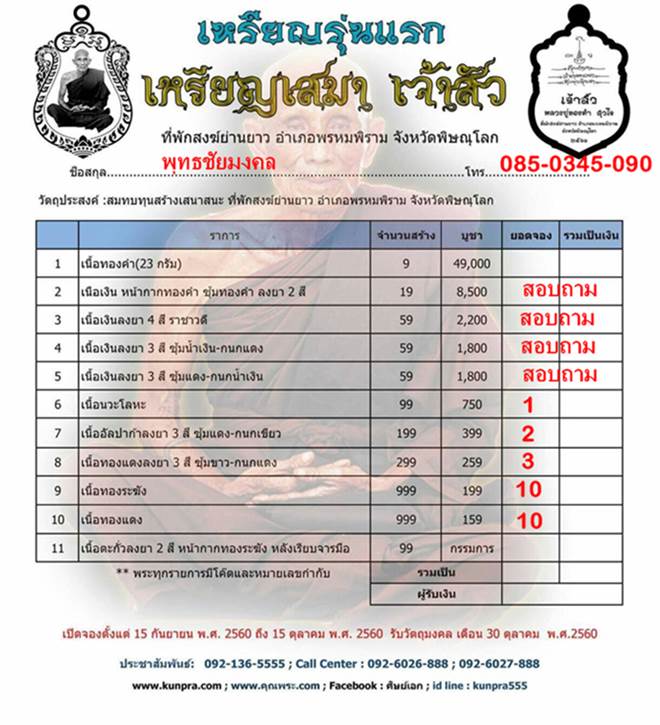 รับวัตถุมงคล 30 ตุลาคม 60 เป็นต้นไป