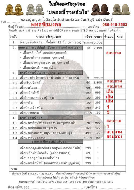 เปิดจอง 5 ก.ย.60 - 26 ก.ย.60 กำหนดพิธีพุทธาภิเษก จะแจ้งให้ทราบทางประชาสัมพันธ์