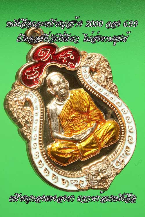 รายการ 12. หนังสือเล่มแรก รวมประวัติและวัตถุมงคลหลวงพ่อรัตน์ วัดป่าหวาย 1 เล่ม + เหรียญเสมาเนื้อทองแดงลงยา 3 สี 1 เหรียญ