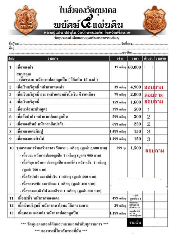 วัตถุมงคลตอกโค๊ดและหมายเลขทุกรายการ