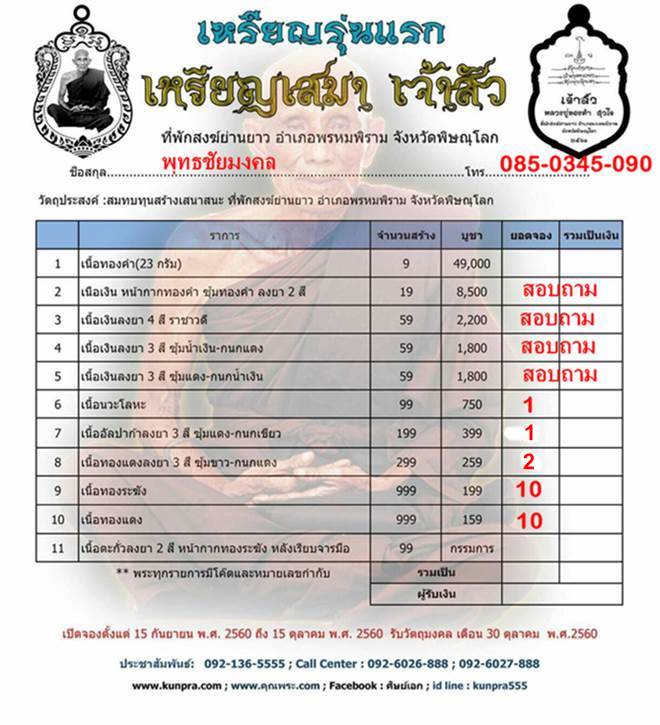 รับวัตถุมงคล 30 ตุลาคม 60 เป็นต้นไป