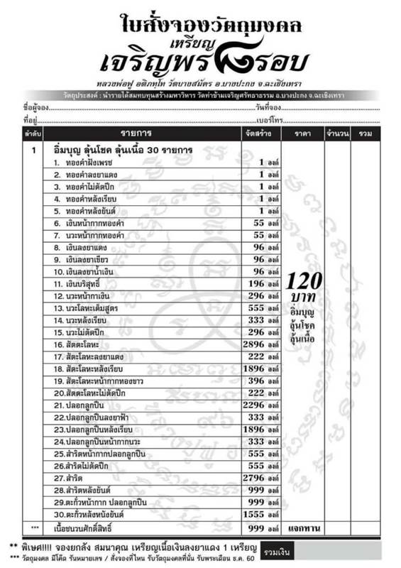 รับวัตถุมงคลเดือน ธันวาคม 60