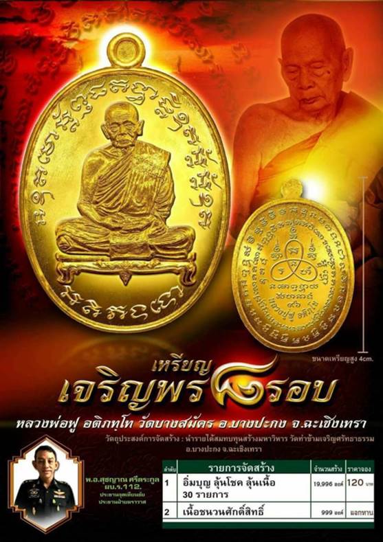 เปิดจองเหรียญเจริญพร 8 รอบ หลวงพ่อฟู อติภทโท วัดบางสมัคร อ.บางปะกง จ.ฉะเชิงเทรา