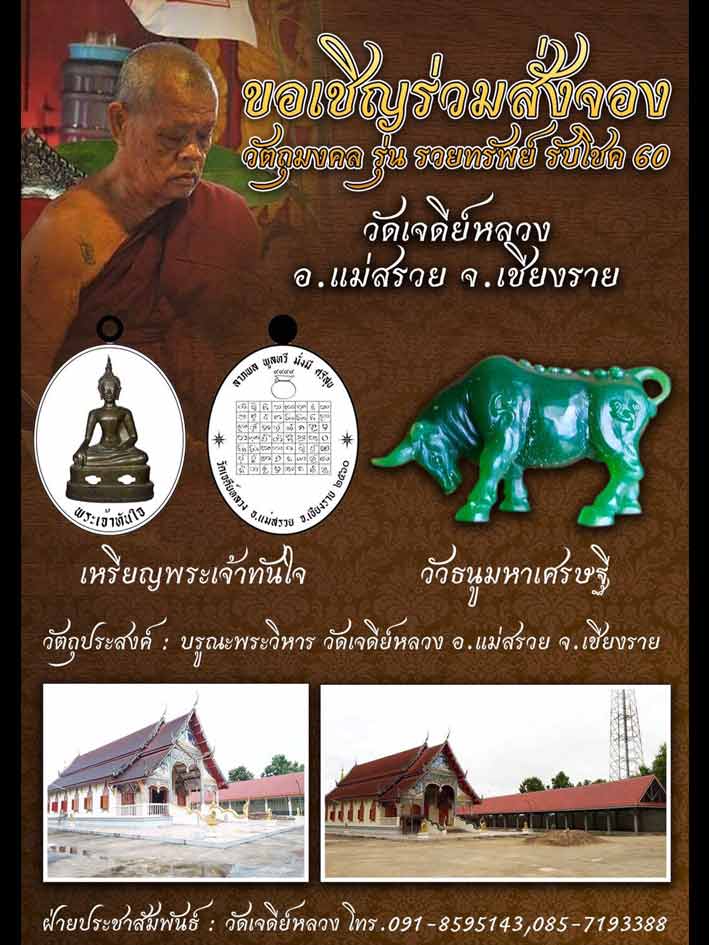 [[[เปิดจอง]]]วัตถุมงคล รุ่น"รวยทรัพย์รับโชค มั่งมีศรีสุข 2560" วัดเจดีย์หลวง จังหวัดเชียงราย...ครูบาอินสม วัดปางน้ำฮ้าย เมตตาอธิษฐานจิต