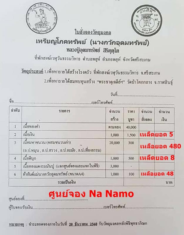 ทุกรายการราคาจอง ศูนย์จองที่ 5 Na Namo 081-2942795