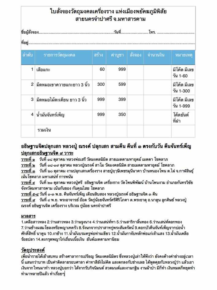 วาระที่ ๓ วันที่ 20 ตุลาคม งานปลุกเสกเครื่องราง สายปู่ฤษีเพชรมุนีนาคา บ้านหนองโพน ต.ไผ่ กาฬสินธ์ เน้นโชคลาภ มหาเสน่ห์ การพนัน