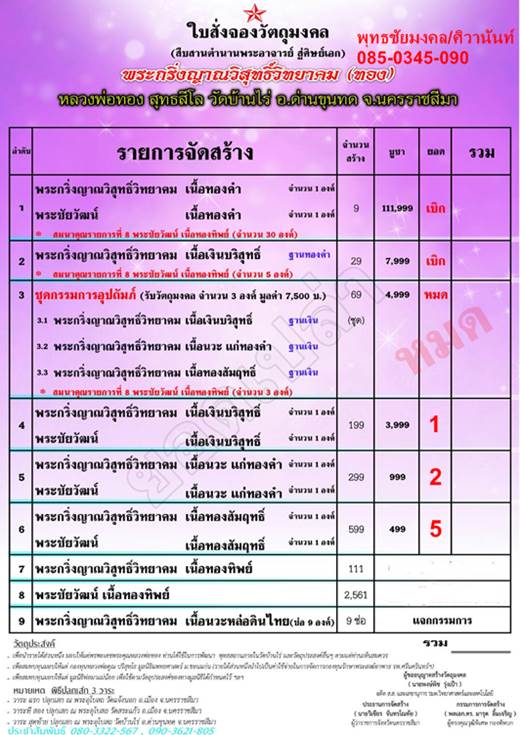 หัวข้อกระทู้ : เปิดจองพระกริ่งญาณวิสุทธิ์วิทยาคม หลวงพ่อทอง สุทฺธสีโล วัดบ้านไร่ จ.นครราชสีมา ราคาวัดค่ะ