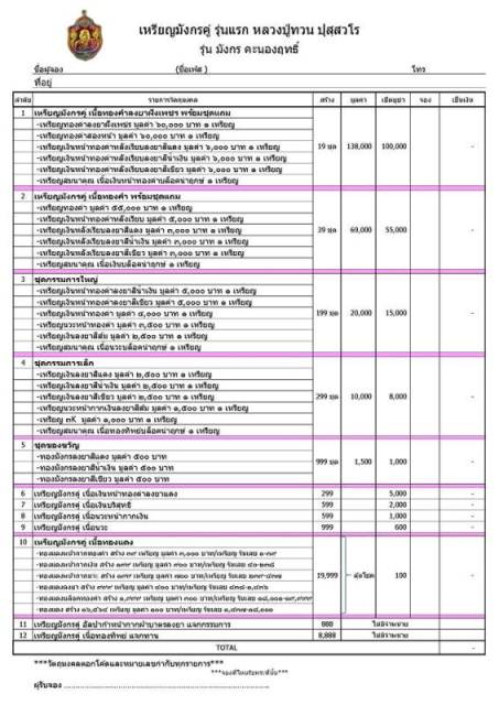 ราคาชุดละ ยกชุด 1600 บาท 1 ชุด พระ 3 เหรียญ