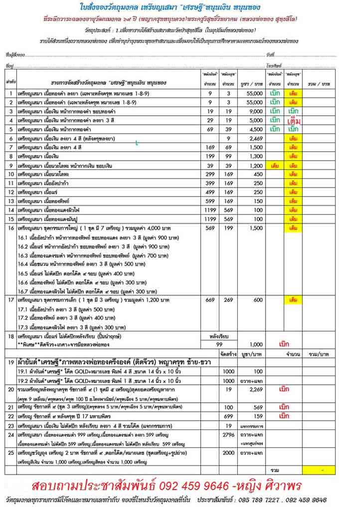 จอง: รายการที่ 16. ชุดกรรมการใหญ่(หลังยันต์) จำนวน 1 ชุด
