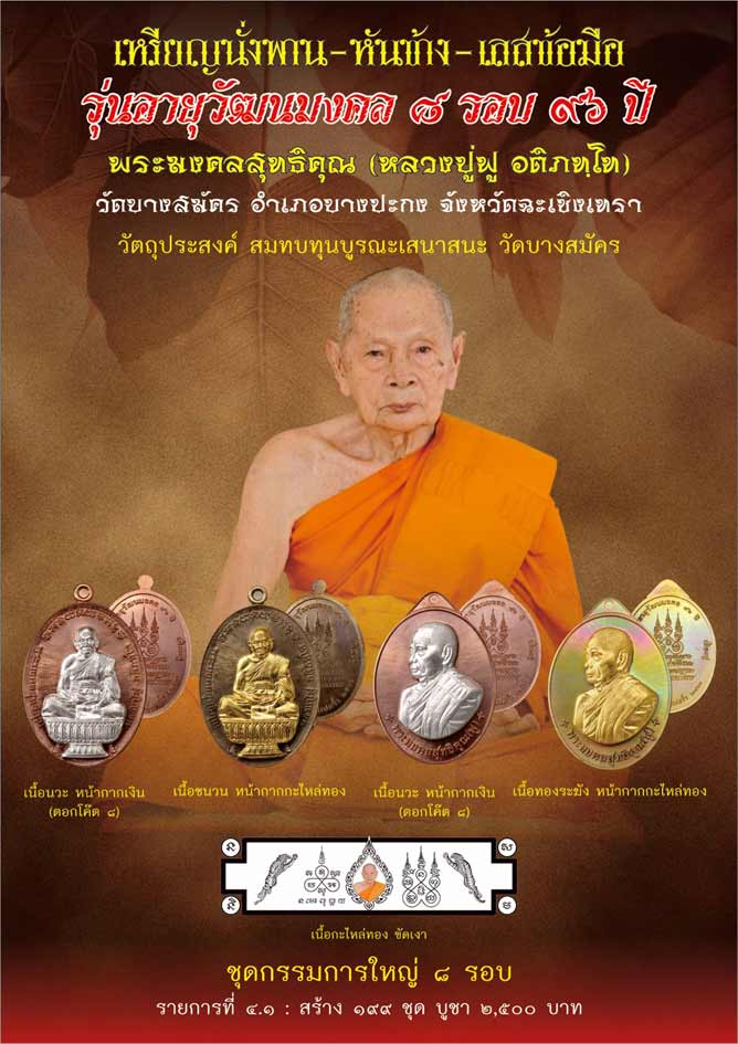 [[[เปิดจอง]]]เหรียญอายุวัฒนมงคล 8 รอบ 96 ปี หลวงพ่อฟู วัดบางสมัคร จังหวัดฉะเชิงเทรา
