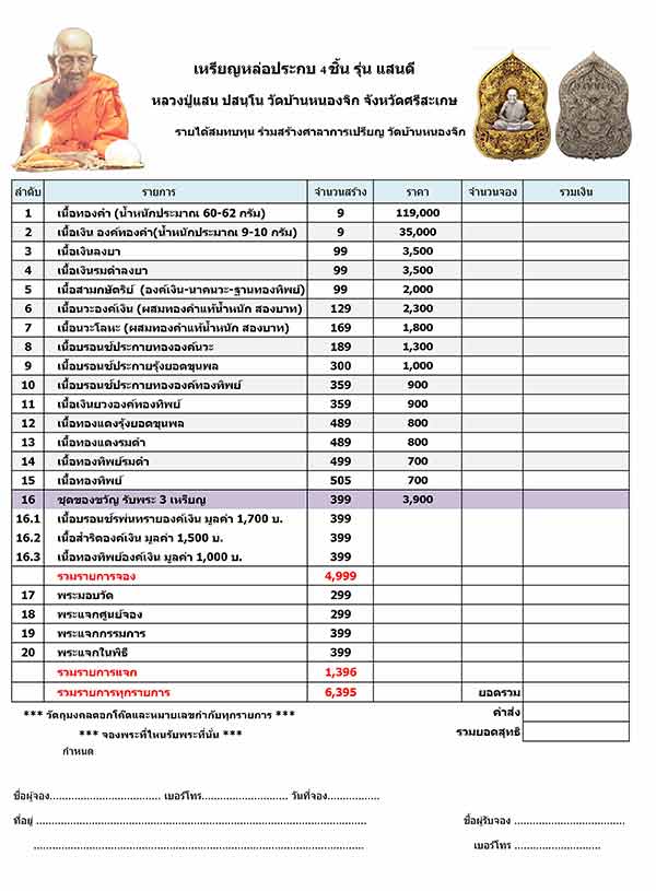16.ชุดของขวัญ(รับพระ 3 เหรียญ)มี 1 ชุด จอง 3,900฿