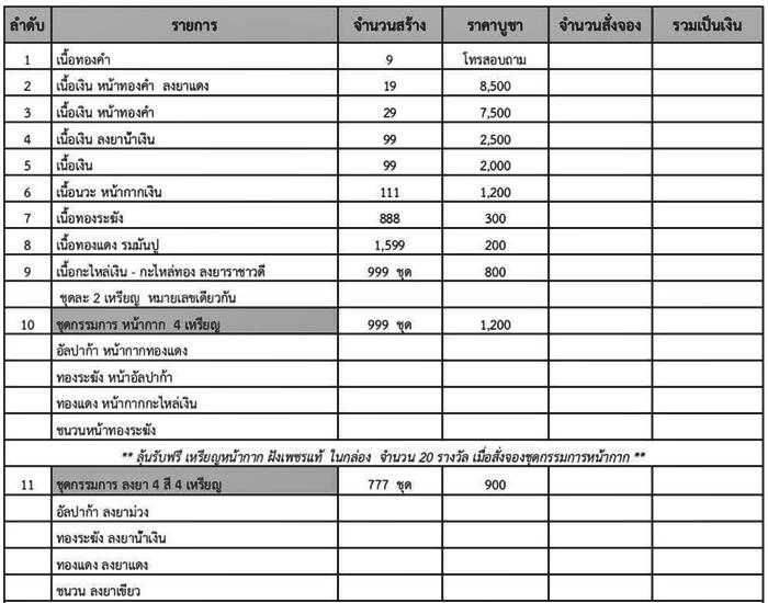 รายการ 9.ชุดเนื้อกะไหล่เงิน กะไหล่ทอง ลงยาชาวดี (รับพระ 2 เหรียญ) ราคาจอง 800.-บาท มียอด = 5