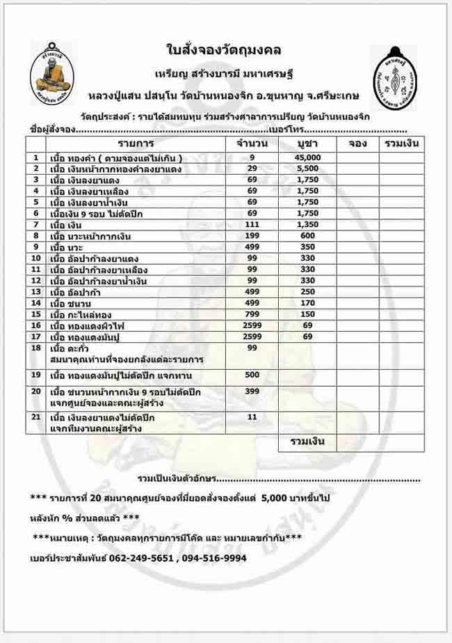 หัวข้อกระทู้ : เปิดรับจองหลวงปู่แสนรุ่น สร้างบารมีมหาเศรษฐี ราคาจองครับ