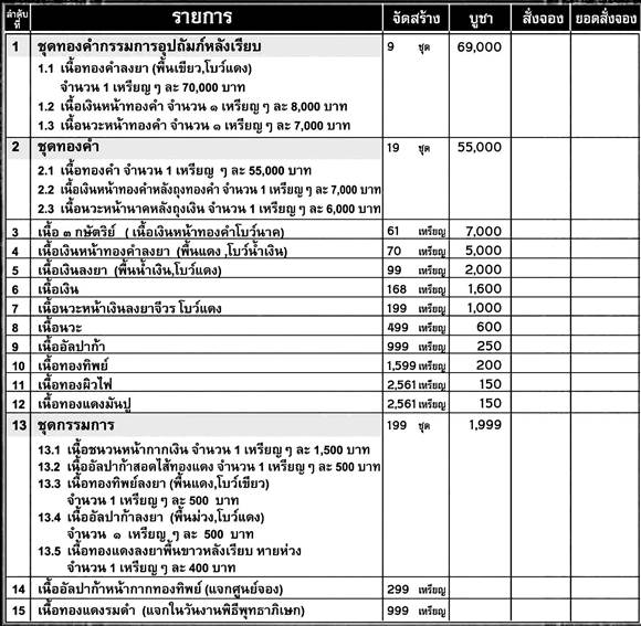 รายการ 13.ชุดกรรมการ(รับพระ 5 เหรียญ) ราคาจอง 1,999.-บาท มียอด= 4