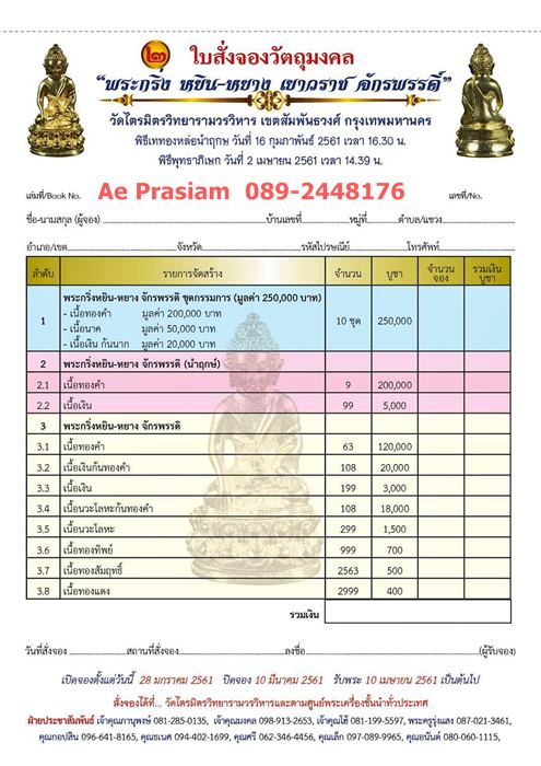 *** กำหนดรับพระ 10 เมษายน 2561 เป็นต้นไปครับ