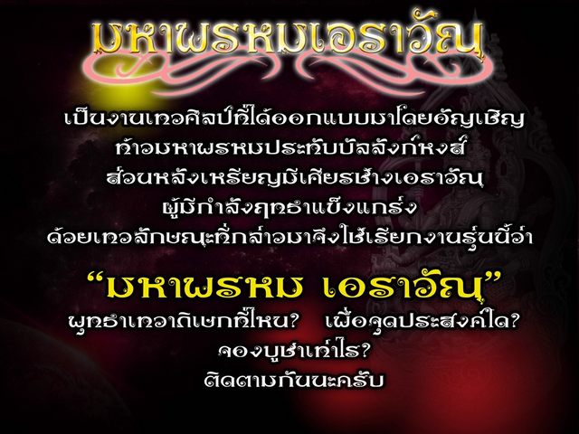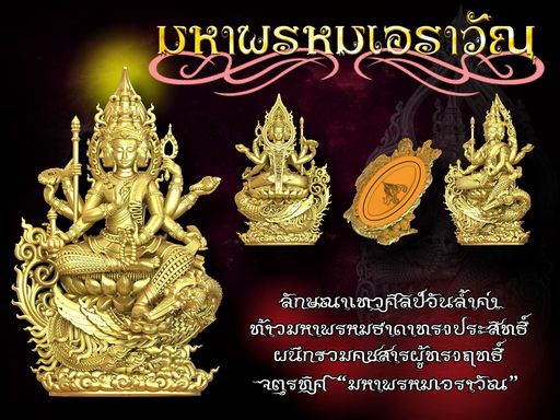 ครั้งยิ่งใน ขอฝากไว้เป็นตำนาน การจัดสร้าง ท้าวมหาพรหม แล่ะ ช้างเอราวัณ กล่าวคือ ท้าวมหาพรหม คือเทพแห่งกำหนด ชะตา เทพผู้สร้างมวลทุกสิ่งทุกอย่าง เทพผู้สร้างโลก(โลก)(โลก)(โลก) อีกประการนึง ได้อัญเชิญ เศียรช้างเอราวัณ มาประทับร่วม ในผลงานชิ้นนี้ โดยถือว่า บารมีช้างเอราวัณ ผู้มีพละกำลัง อันแข็งแรง จะช่วยขจัดปัดเป่าสิ่งชั่วร้ายที่เข้ามากล้ำกลาย แก่ผู้ครอบครองแล่ะศรัทธา ถือว่า มงคลยิ่งในการมีวัตถุมงคลรุ่นนี้ ไว้กับเคหะสถานบ้านเรือนที่ประกอบการร้านค้า แม้กระทั่งพกพายามเดินทาง มงคลนักแล..🙏🙏🙏