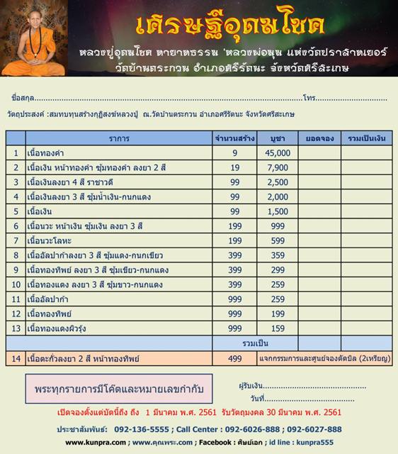 *** เปิดจอง//วัตถุมงคล รุ่น "เศรษฐีอุดมโชค" หลวงปู่อุดมโชค วัดบ้านตระกวน อ.ศรีรัตนะ จ.ศรีสะเกษ ทายาทธรรม "หลวงพ่อมุม วัดประสาทเยอร์"