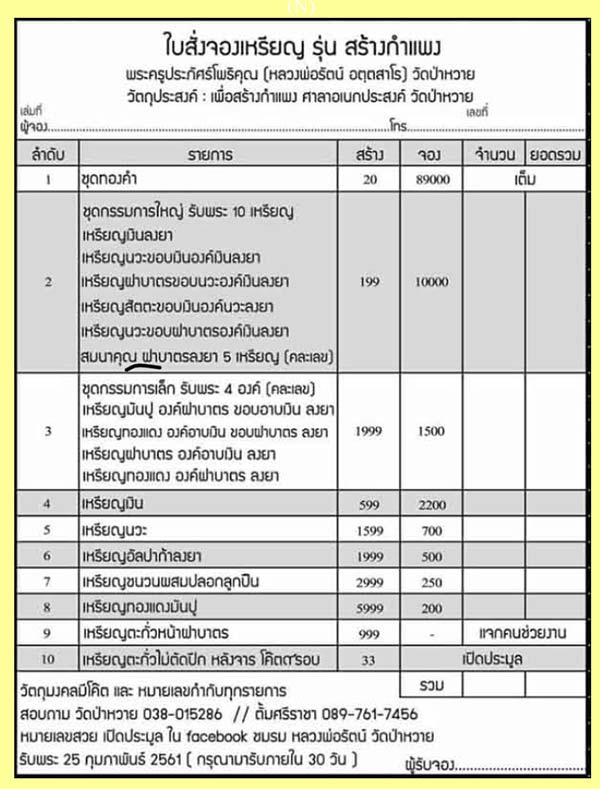 1. ชุดกรรมการเล็กรับพระ 4 เหรียญ + เหรียญเนื้อนวโลหะ 1 เหรียญ รับพระรวม 5 เหรียญ ราคาชุดละ 3,000.- มียอดจำนวน 2 ชุด