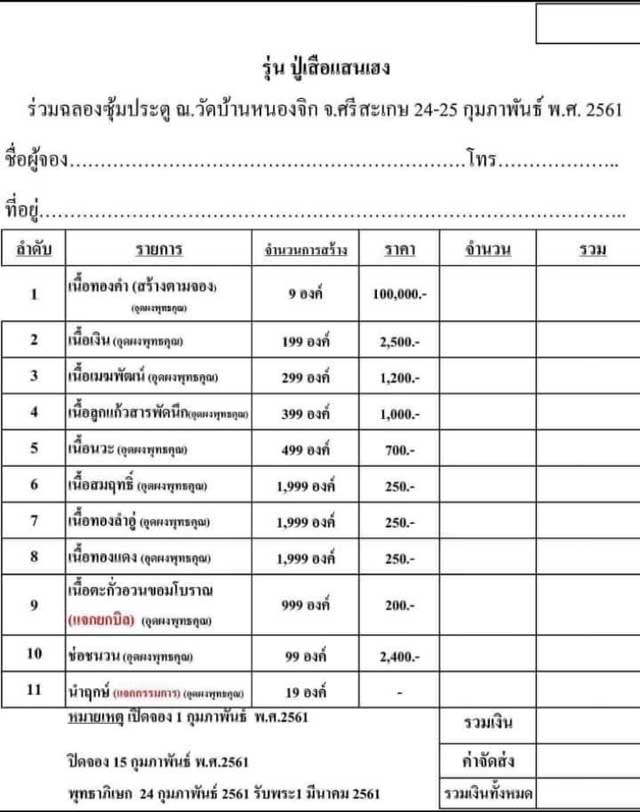7.เนื้อทองลำอู่ มี 4 องค์ๆละ 250 บาท