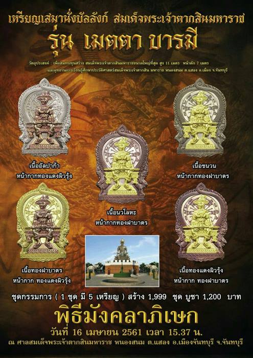 *** เปิดจอง//เหรียญเสมานั่งบัลลังก์ สมเด็จพระเจ้าตากสินมหาราช รุ่น เมตตา บารมี