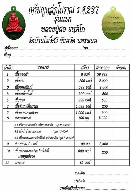 รายการ 6.เนื้อสัมฤทธิ์โบราณ ราคาจอง 250.-บาท มียอด = 5