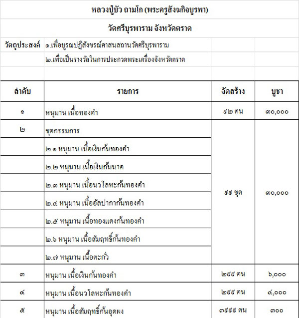 รายการที่ ๑.หนุมาน เนื้อทองคำ จำนวน 1 ตน /ราคาตนละ 35,000 บาท