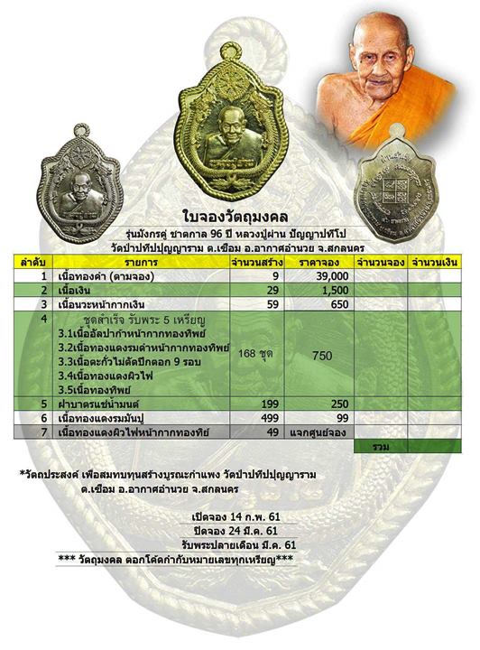 *** มีรายการเปิดจอง ดังนี้ครับ