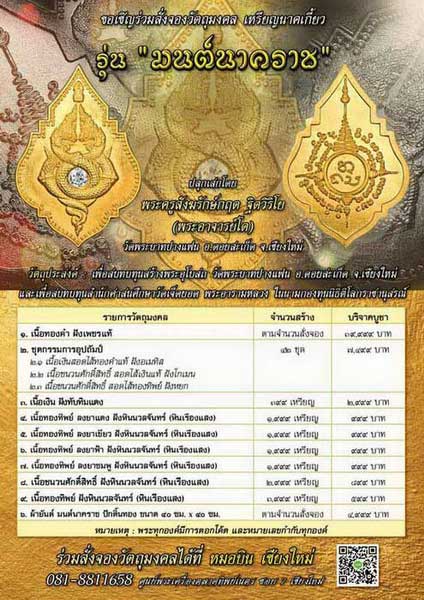 วัตถุประสงค์ : เพื่อสมทบทุนสร้างพระอุโบสถ วัดพระบาทปางแฟน อ.ดอยสะเก็ด จ.เชียงใหม่ และเพื่อสมทบทุนสำนักศาสนศึกษาวัดเจ็ดยอด พระอารามหลวง ในนามกองทุนนิธิติโลกราชานุสรณ์