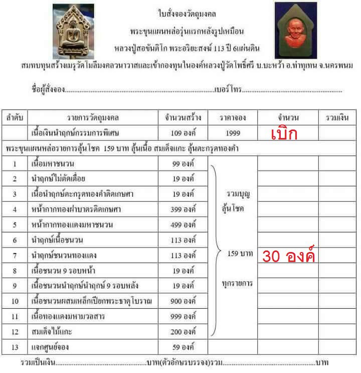 ยินดีเป็นสะพานบุญ..จองบูชาร่วมบุญเชิญค่ะ |