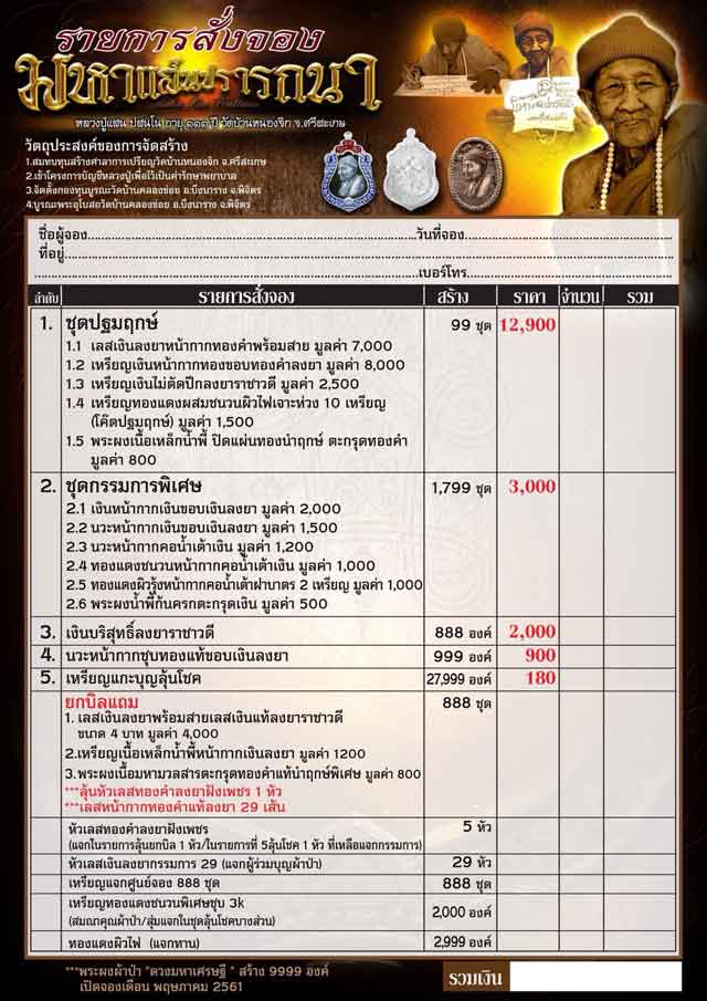 รายการ 1.ชุดปฐมฤกษ์(รับวัตถุมงคล 5 รายการ) ราคาจอง 12,000.-บาท มียอด = สอบถาม