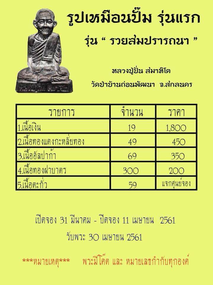 รูปเหมือนปั๊มรุ่นแรก รุ่น รวยสมปรารถนา หลวงปู่ปั่น สมาหิโต วัดป่าบ้านถ่อนพัฒนา จ.สกลนคร