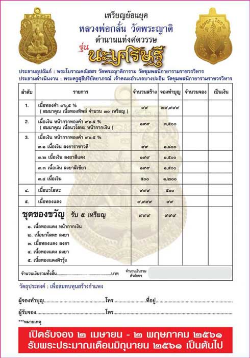 เปิดจองเหรียญหลวงพ่อกลั่น วัดพระญาติ
