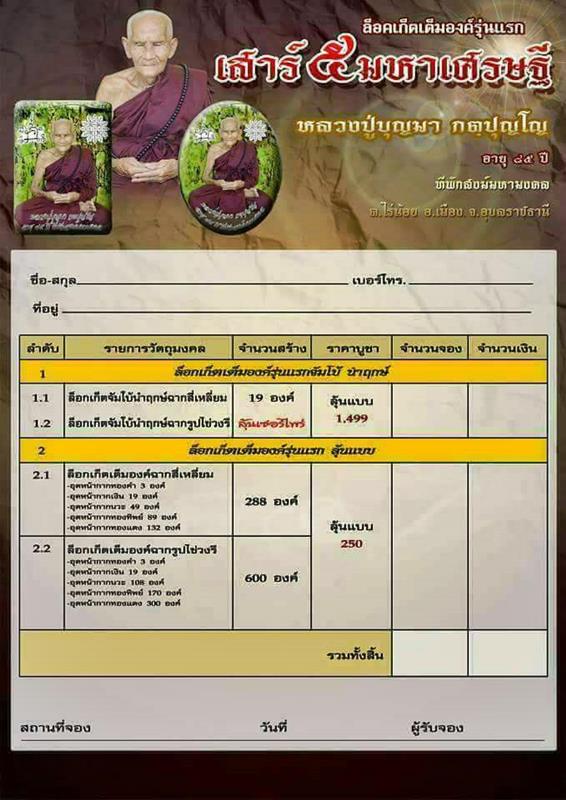 *** เปิดจอง//ล็อกเก็ตเต็มองค์ รุ่นแรก"เสาร์ ๕ มหาเศรษฐี" หลวงปู่บุญมา กตฺปุณโญ ที่พักสงฆ์มหามงคล จ.อุบลราชธานี