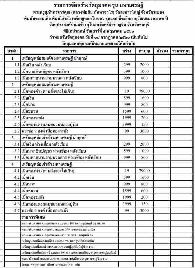 1.นำฤกษ์ เหรียญหล่อสมเด็จ
