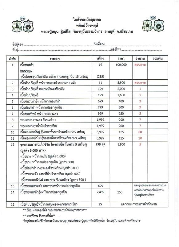 รายการ 3.เนื้อเงินบริสุทธิ์ ลงยาหน้าแดง จีวรส้ม ราคาจอง 2,000.-บาท มียอด= 1