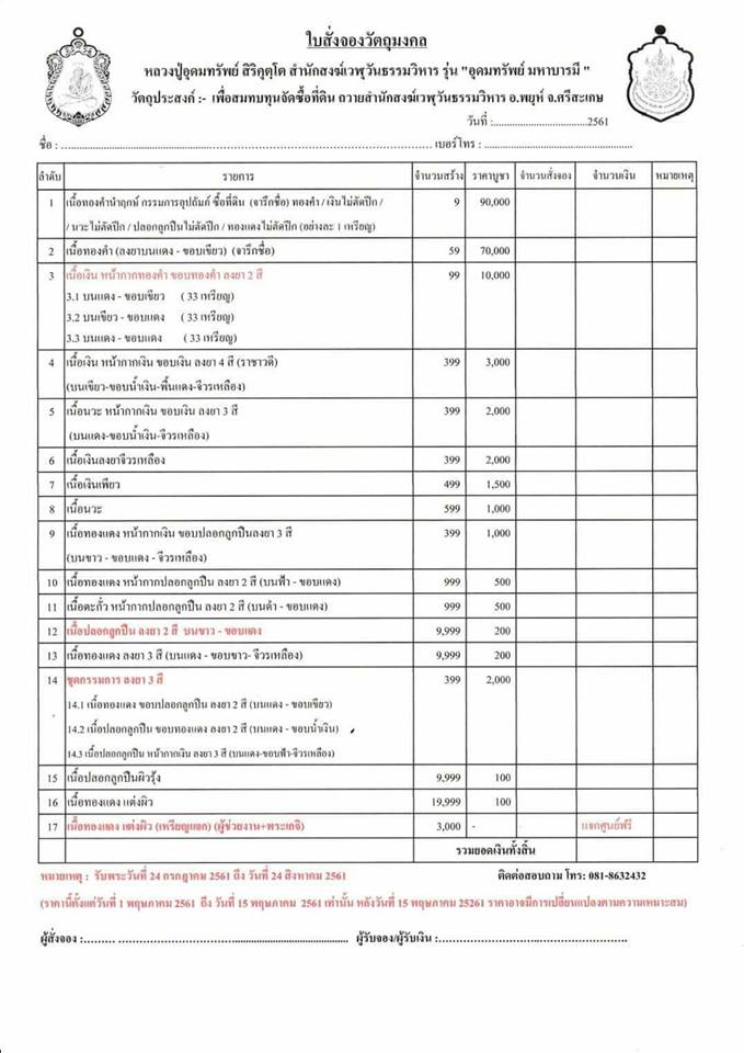 รายการที่ 16 เนื้อทองแดง มียอด 50 องค์ องค์ละ 100 บาท