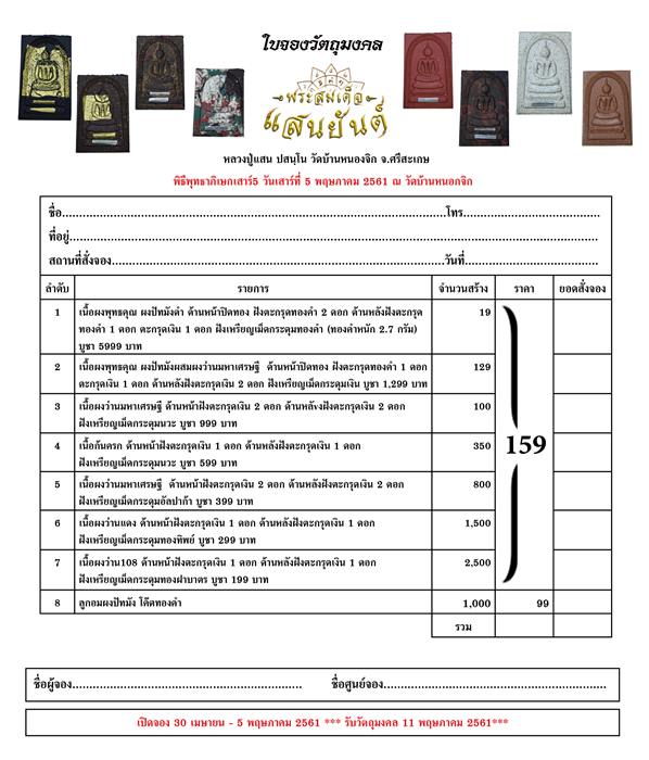 *** กำหนดรับพระตั้งแต่ 11 พฤษภาคม 2561 เป็นต้นไป
