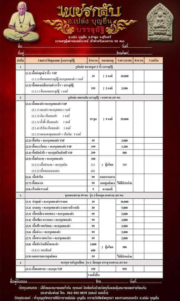 -รายการที่ 2.5 รูปหล่อเพชรกลับ ลุ้นโชคจอง 300/องค์ มียอด 5 องค์