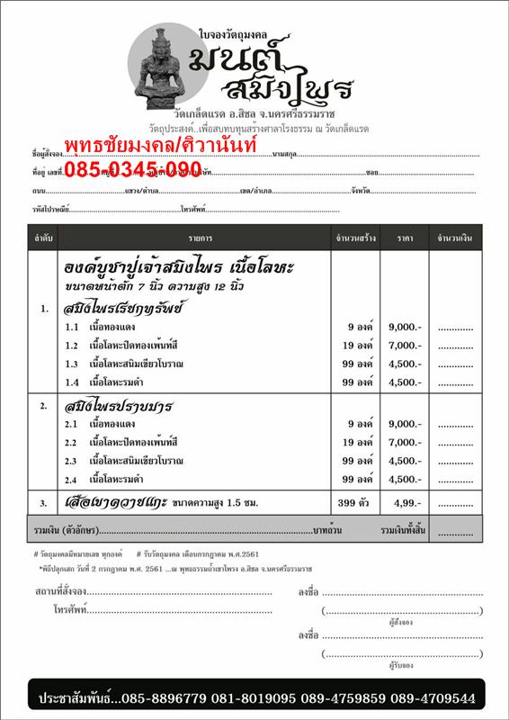 รับวัตถุมงคล เดือนกรกฎาคม 2561