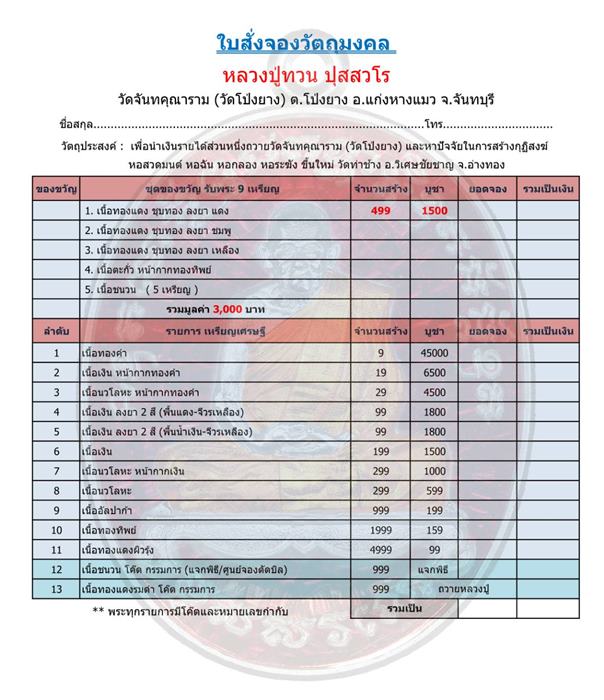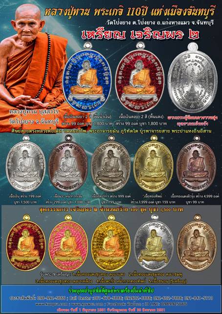 *** เปิดจอง//เหรียญเจริญพร2 หลวงปู่ทวน ปุสสวโร วัดโป่งยาง อ.แก่งหางแมว จ.จันทบุรี