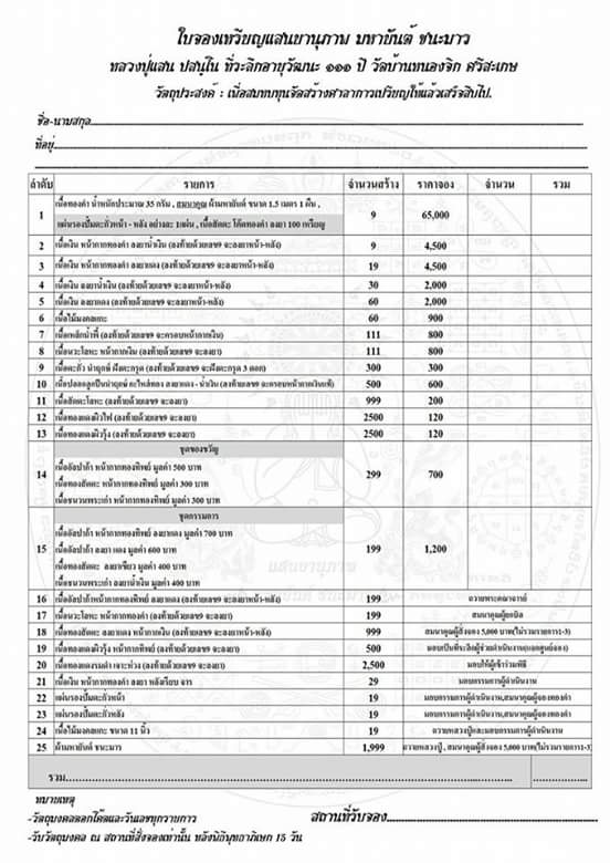กำหนดรับวัตถุมงคล พ.ค. - มิ.ย.