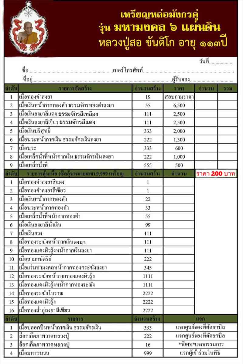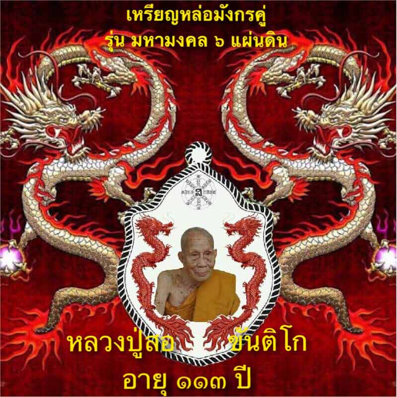 $$$$$ เหรียญหล่อมังกรคู่ รุ่น "มหามงคล 6 แผ่นดิน" หลวงปู่สอ ขันติโก ราคาจองทุกรายการ
