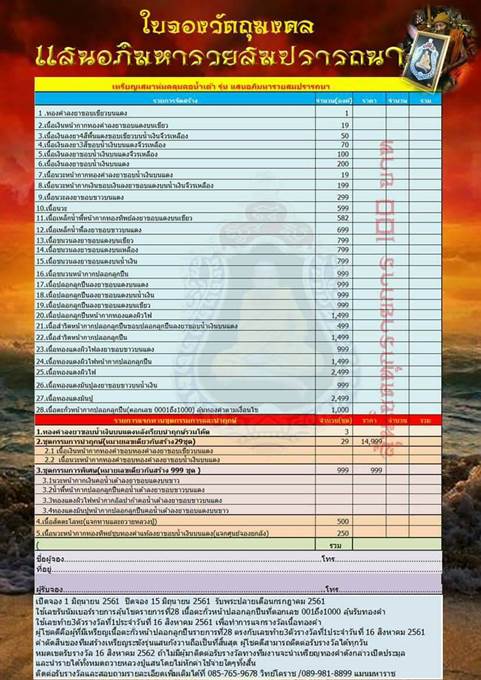 *** กำหนดรับพระปลายเดือน กรกฏาคม 2561 เป็นต้นไป