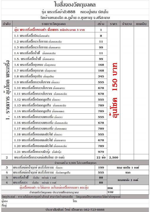 ËÑÇ¢éÍ¡ÃзÙé :ÿQQQ¾ÃÐà¤Ã×èͧà»Ô´ÃѺ¨Í§¾ÃСÃÔè§à¨éÒÊÑÇ 888 ËÅǧ»Ùèáʹ »Ê¹Úâ¹ ÇÑ´ºéҹ˹ͧ¨Ô¡ ¨.ÈÃÕÊÐà¡É ÁÕÂÍ´à»Ô´¨Í§ÿ