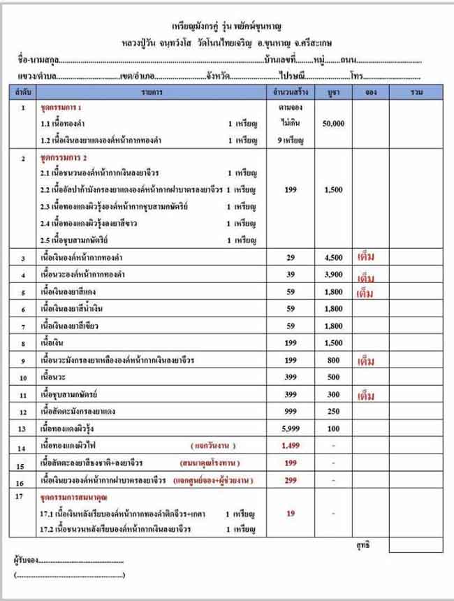 รายการ 2 ชุดกรรมการ 2 มี 1 ราคา 1500