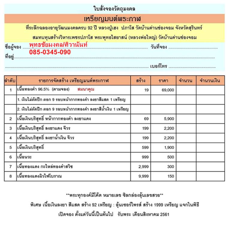 รับวัตถุมงคลในเดือนสิงหาคม 2561 เป็นต้นไป